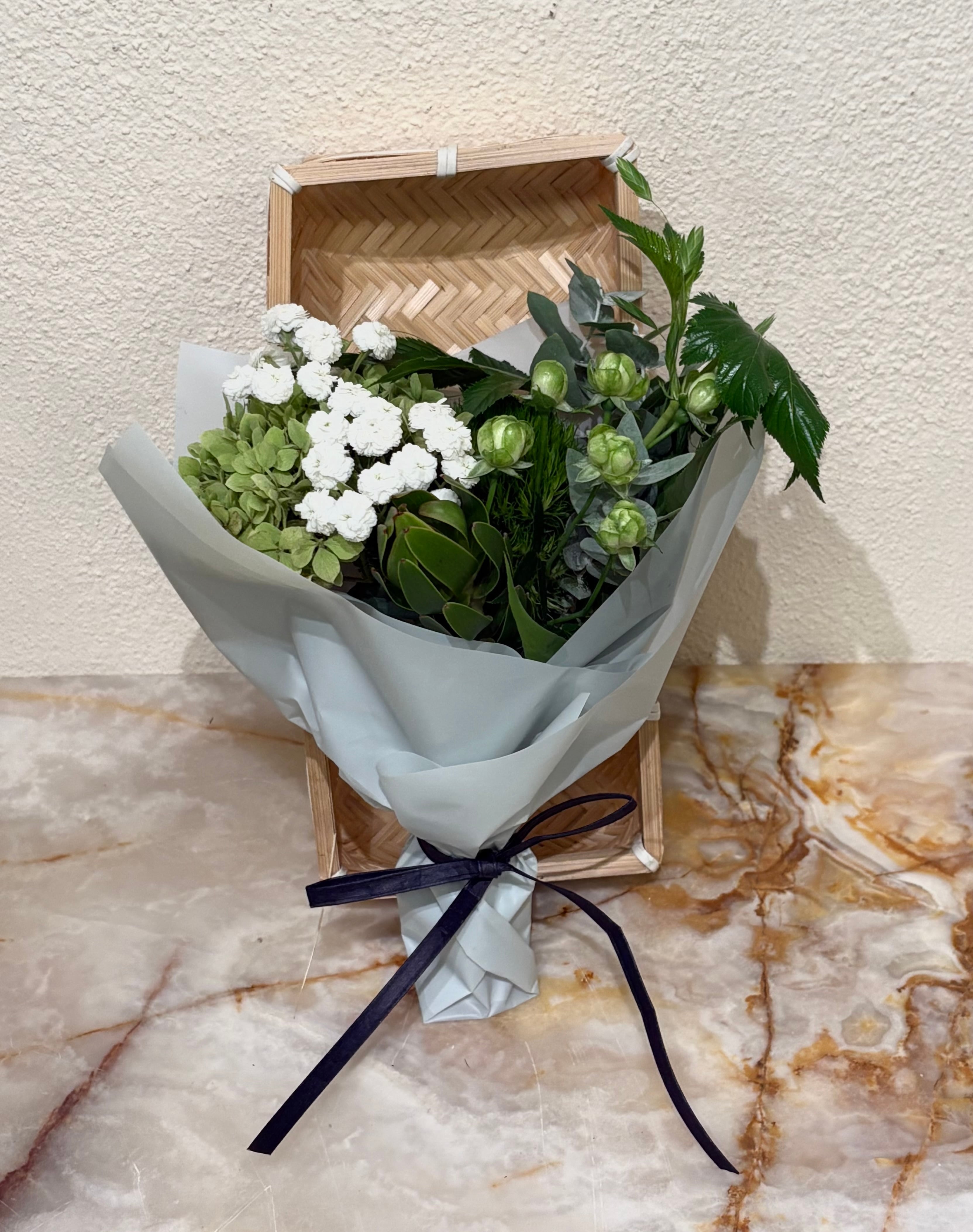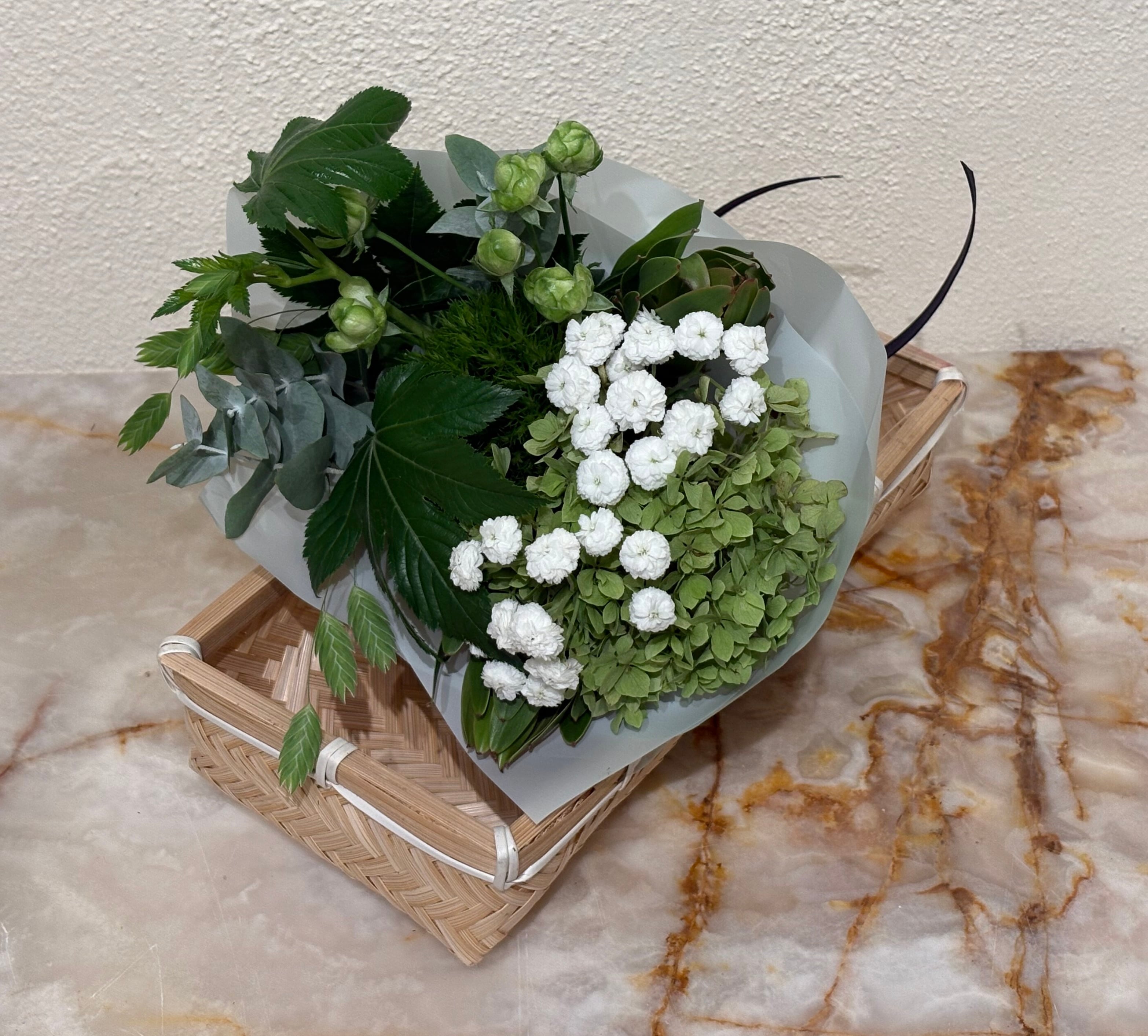 なお、仕入れ状況により使用する花材が変更となる場合がございますが、全体の雰囲気を崩さないよう配慮して制作いたします。このセットには、季節感あふれる美しい花々が添えられ、特別な夏のひとときを演出します。